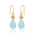 Ørering af 22 karat guldbelagt messinglegering med vedhæng af aqua chalcedony og labradorite