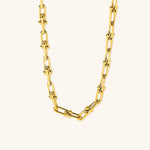 Det bedste er, at halskæden er helt vandtæt, hvilket gør den til den ideelle smykke til enhver lejlighed. Den er lavet af etisk fremstillet rustfrit stål med 18 karat forgyldning, hvilket sikrer holdbarhed og stil. Derudover er den hypoallergen og hudvenlig, hvilket garanterer komfort ved brug.